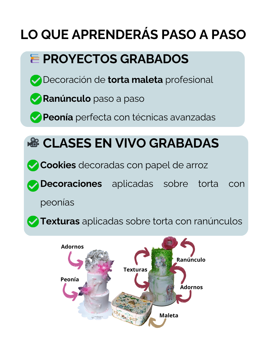 🎂 3 VIDEOS: 3 clases grabadas en vivo con técnicas para aplicar de forma inmediata en tus trabajos y lograr resultados profesionales.